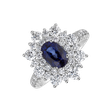 Ohromujúci prsteň z 18kt bieleho zlata zdobený krásnymi diamantmi a zafírom, ktoré mu dodávajú nezabudnuteľné čaro. Tento šperk je dokonalým doplnkom pre elegantné večery a špeciálne príležitosti. Jeho diamanty a zafír spoločne vytvárajú harmóniu vyžarujúcu krásu a luxus. Šperk je súčasťou kolekcie Diana.