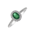 Tento prsteň, majstrovsky vyrobený z lesklého 18kt bieleho zlata, je symbolom sofistikovanosti a nekonečnej elegancie. Jeho diamanty a smaragd, trblietavé ako kvapky rosy, vyžarujú luxus a výnimočnosť. Zlatý šperk je dokonalým doplnkom každého úspechu. Šperk je súčasťou kolekcie Diana.