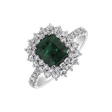 Odvaha je stelesnená v tomto prsteni z bieleho zlata 14kt s diamantmi a smaragdom, ktorý hreje pri srdci, ktorý je určený pre silné osobnosti, ktoré oslavujú svoj úspech s rovnakou vážnosťou, s akou nosia svoje šperky. Šperk je súčasťou kolekcie Diana.