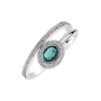 Tento prsteň z bieleho zlata s kapacitou 18kt, ozdobený diamantmi a smaragdom, je obklopený aurou luxusu a je drahokamom, ktorý odráža hĺbku a sofistikovanosť. Jeho srdce je ako okno do sveta nekonečnej elegancie. Šperk je súčasťou kolekcie Luxury Classic.