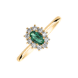 Tento nádherný 14kt prsteň zo žltého zlata s diamantmi a emerage je elegantným doplnkom pre každú príležitosť. Smaragd symbolizuje obnovu a energiu a diamanty dodávajú prsteňu krásny lesk a svetlo. Toto je šperk pre tých, ktorí chcú osláviť krásu života. Šperk je súčasťou kolekcie Diana.