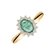 Jemnosť a elegancia sú kombinované v tomto prsteni vyrobenom zo 14kt žltého zlata s diamantmi a smaragdom. Jeho jemný dizajn je dokonalým doplnkom pre každú dôležitú príležitosť, dodáva šmrnc a zároveň zdôrazňuje jemnú krásu nositeľa. Šperk je súčasťou kolekcie Diana.