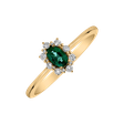 14kt prsteň zo žltého zlata s diamantmi a smaragdom je vyjadrením romantiky aj sily. Tento prsteň kombinuje krásu diamantov s jemným leskom smaragdu a vytvára prázdnu bridlicu pre nekonečný príbeh lásky a vášne. Šperk je súčasťou kolekcie Diana.