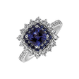 Exkluzívny prsteň z bieleho zlata 18kt s diamantmi, tanzanitom a zafírom je ako víchrica ohňa - ohromujúci, vzrušujúci a nezabudnuteľný. Ideálne pre ženu, ktorá túži po luxuse a vášni. Šperk je súčasťou kolekcie Diana.
